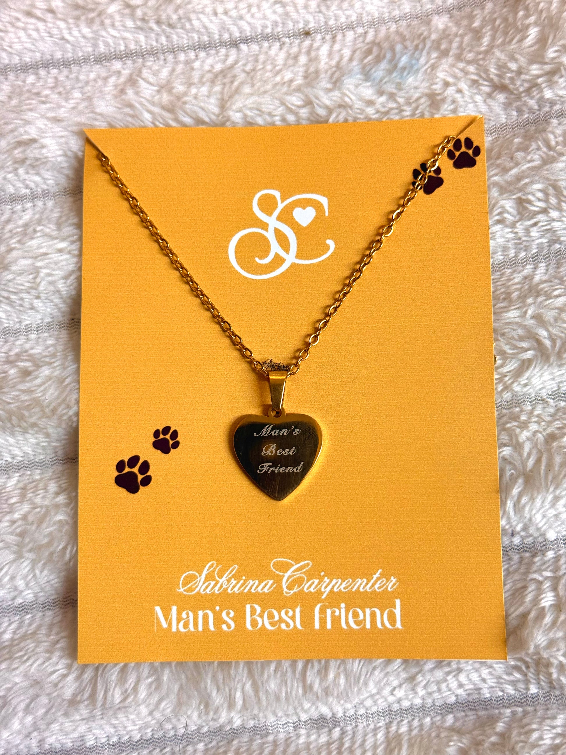 Sabrina Carpenter - Man’s Best Friend Engraved' Gold Heart Necklace